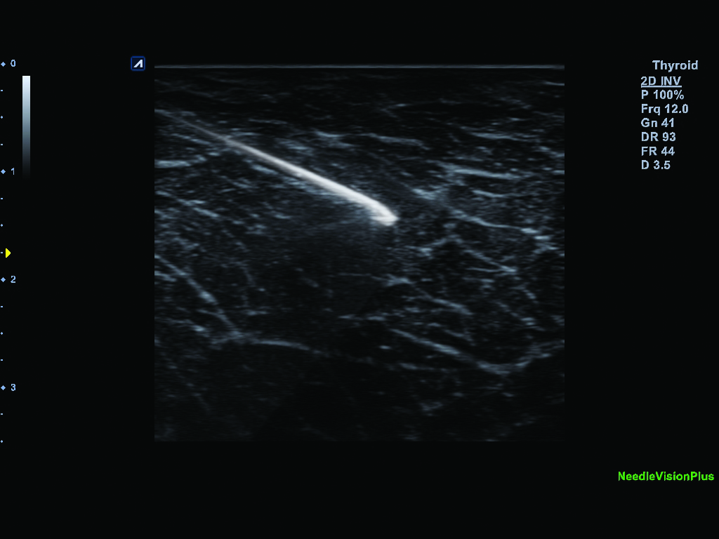 Die besondere Steuerung der Schallstrahlen sorgt für eine bessere Visualisierung der Nadelspitze und des Schaftes.