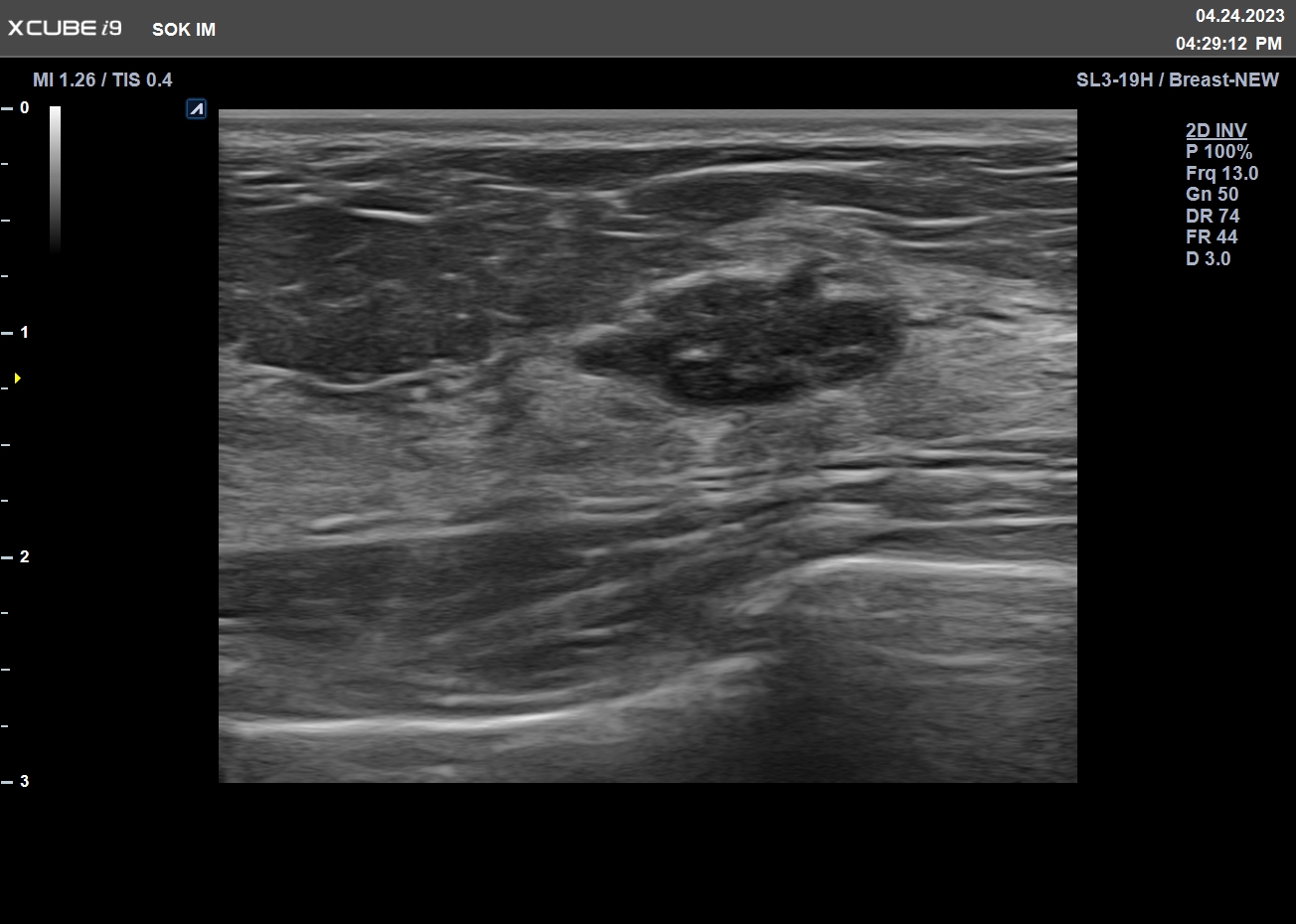 Mit der Verwendung der harmonischen Signalverarbeitungstechnik wird der Signalverlust minimiert und die Bandbreite des vom Schallkopf übertragenen Signals verbessert. Artefakte werden dadurch minimiert und Auflösung, Kontrast und SNR verbessert, um Läsionen optimal darzustellen.